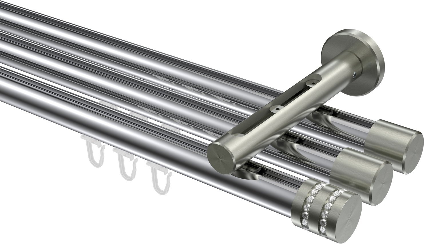 Gardinenstangen mit Innenlauf aus Aluminium / Metall in 20 mm Ø, 3-läufig, Modell SITENO - Estana Chrom / Edelstahl-Optik