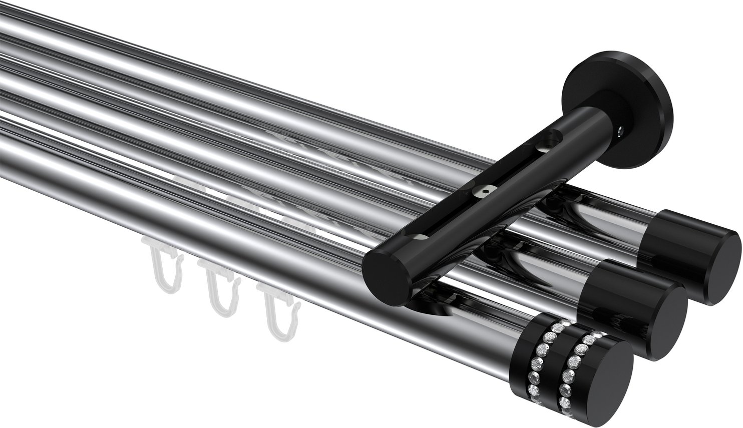 Gardinenstangen mit Innenlauf aus Aluminium / Metall in 20 mm Ø, 3-läufig, Modell SITENO - Estana Chrom / Schwarz