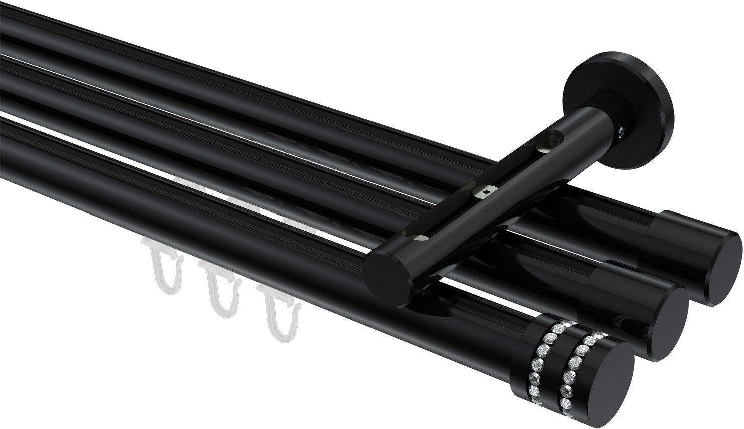 Gardinenstangen mit Innenlauf aus Aluminium / Metall in 20 mm Ø, 3-läufig, Modell SITENO - Estana Schwarz