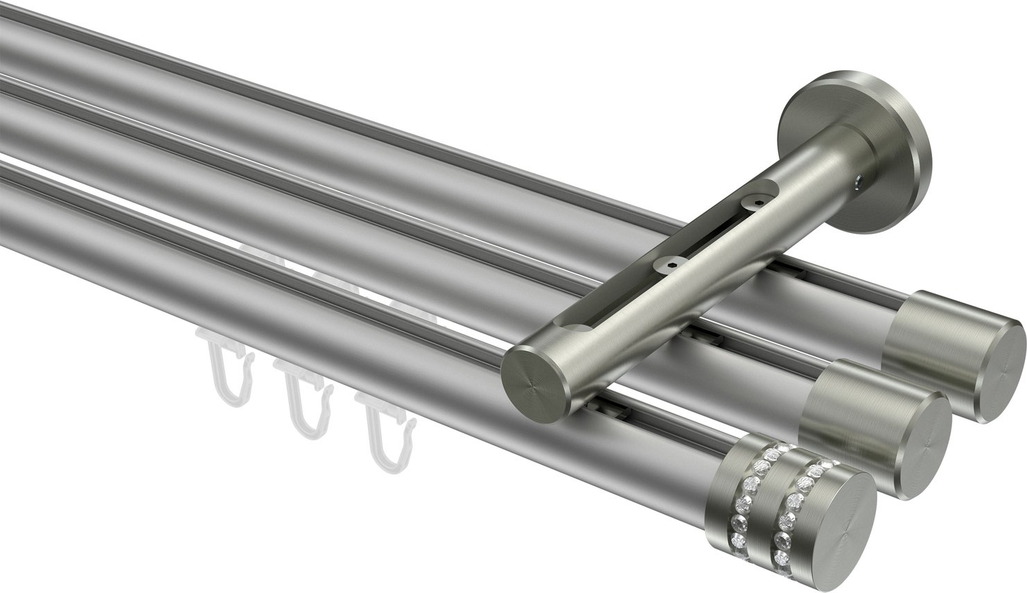 Gardinenstangen mit Innenlauf aus Aluminium / Metall in 20 mm Ø, 3-läufig, Modell SITENO - Estana Silbergrau / Edelstahl-Optik