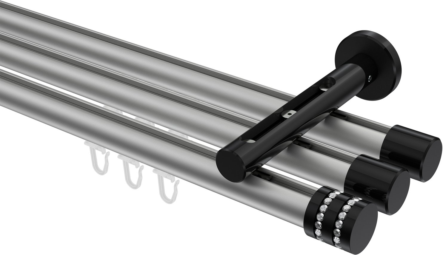 Gardinenstangen mit Innenlauf aus Aluminium / Metall in 20 mm Ø, 3-läufig, Modell SITENO - Estana Silbergrau / Schwarz