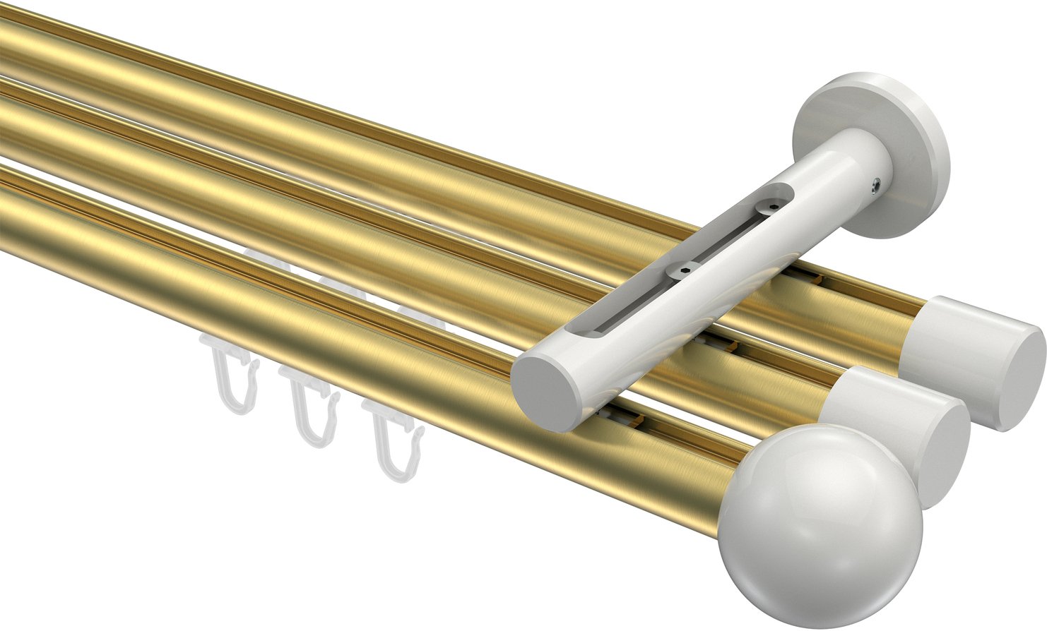 Gardinenstangen mit Innenlauf aus Aluminium / Metall in 20 mm Ø, 3-läufig, Modell SITENO - Luino Messing-Optik / Weiß