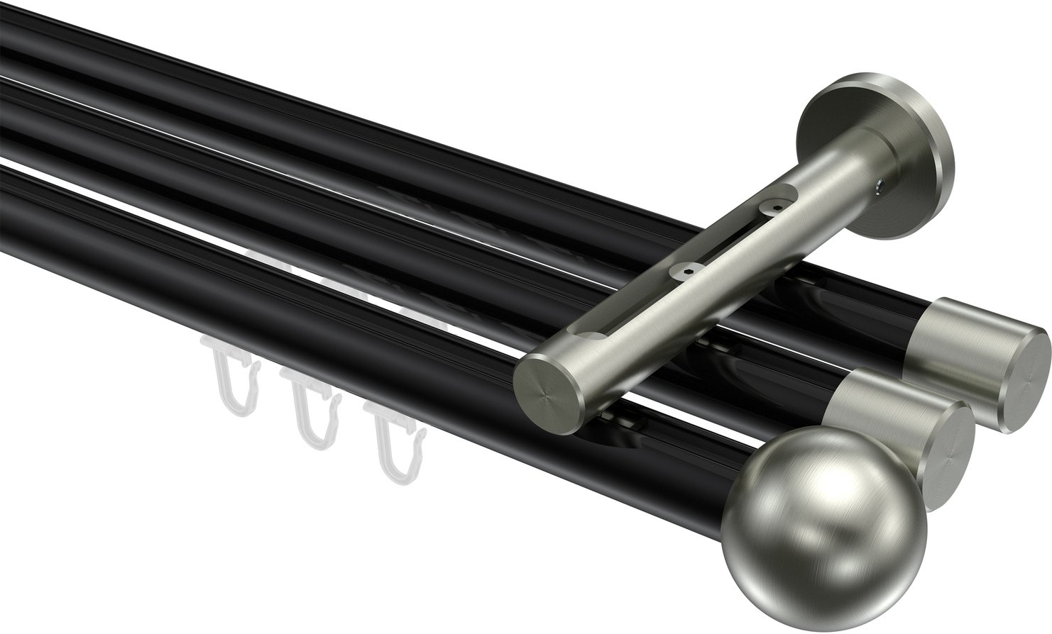 Gardinenstangen mit Innenlauf aus Aluminium / Metall in 20 mm Ø, 3-läufig, Modell SITENO - Luino Schwarz / Edelstahl-Optik
