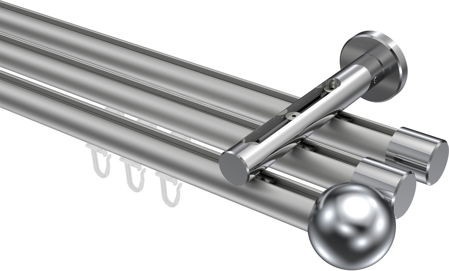 Informationen zu Innenlauf Gardinenstange Aluminium / Metall 20 mm Ø 3-läufig SITENO - Luino Silbergrau / Chrom: