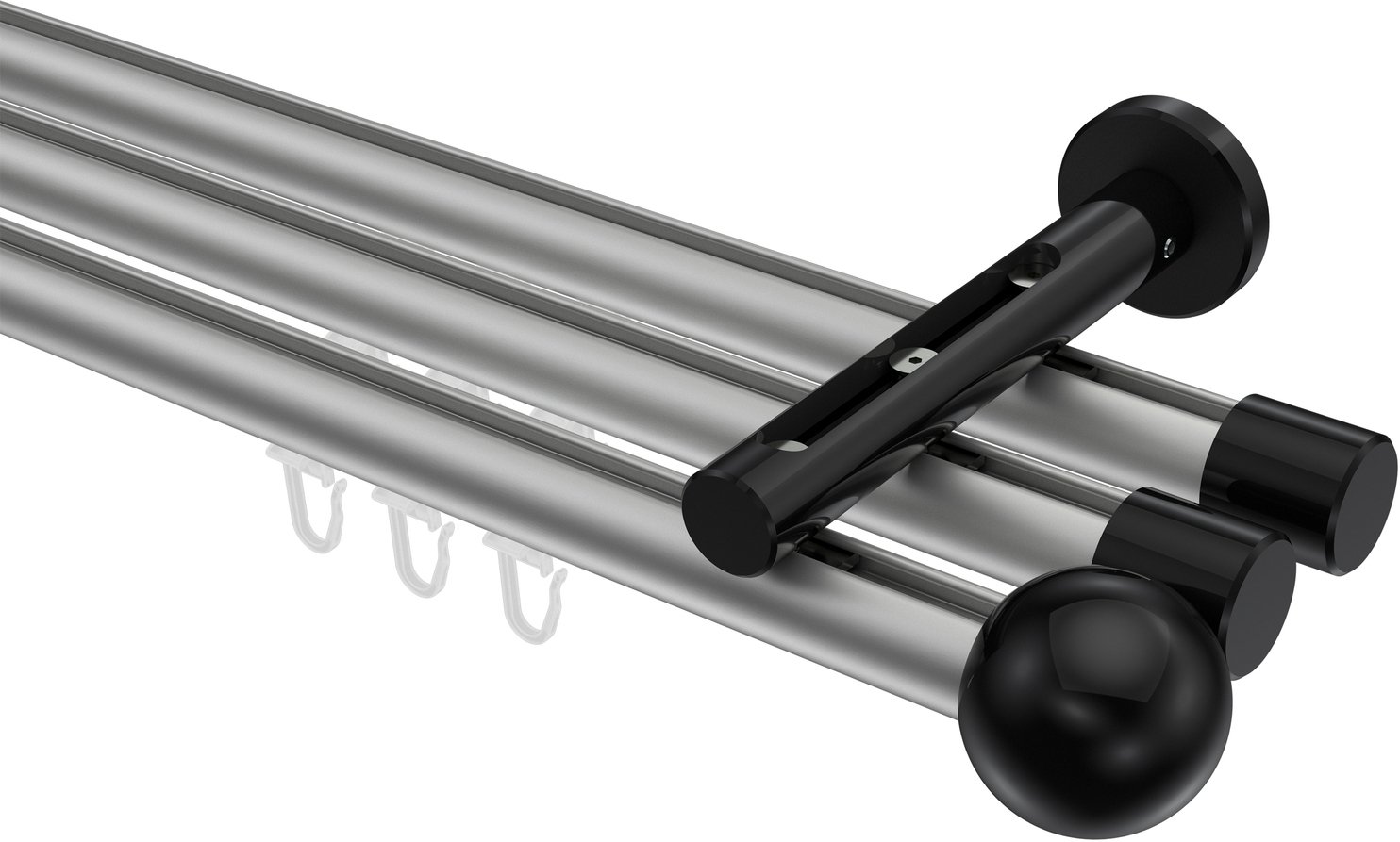 Gardinenstangen mit Innenlauf aus Aluminium / Metall in 20 mm Ø, 3-läufig, Modell SITENO - Luino Silbergrau / Schwarz