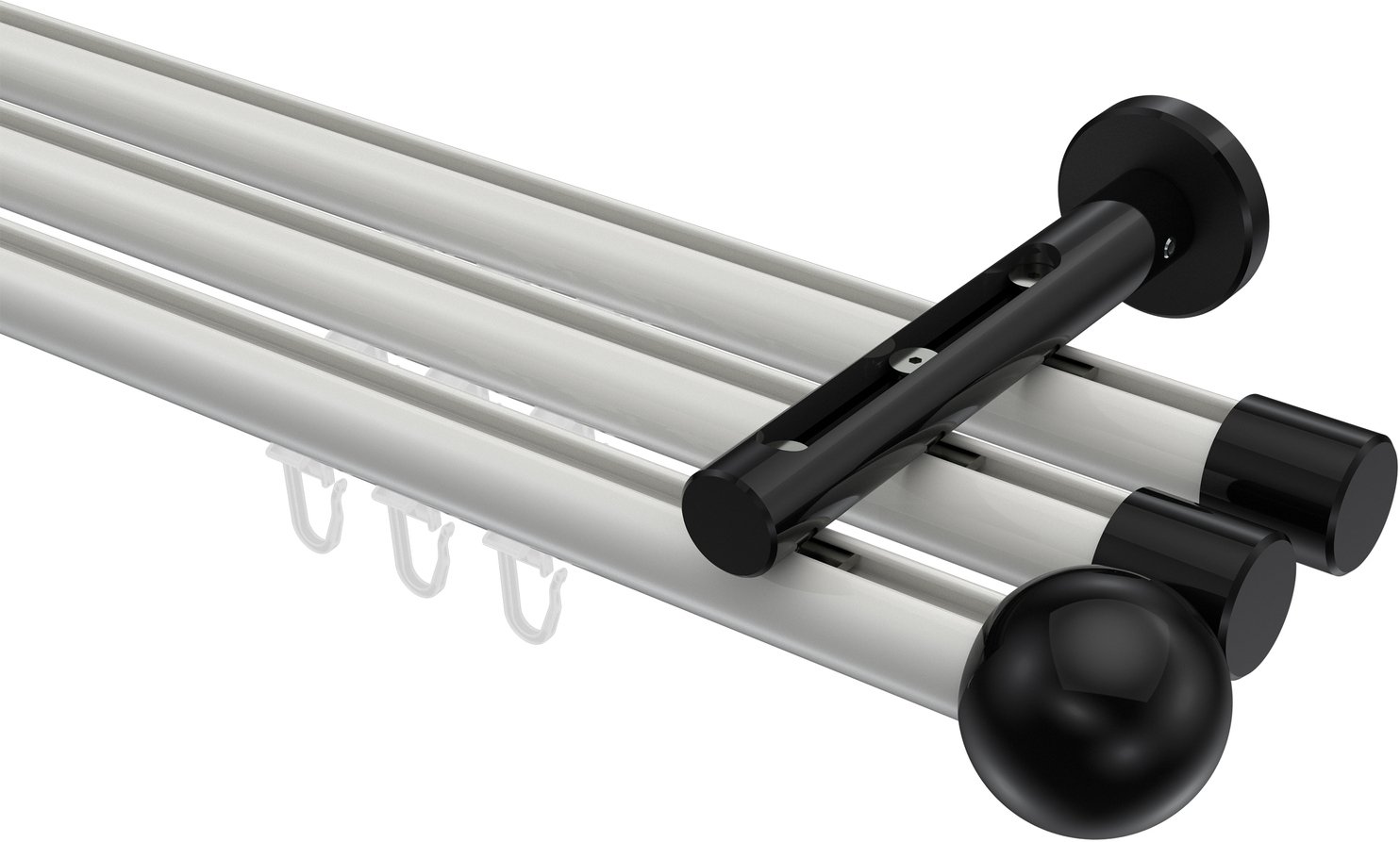 Informationen zu Innenlauf Gardinenstange Aluminium / Metall 20 mm Ø 3-läufig SITENO - Luino Weiß / Schwarz: