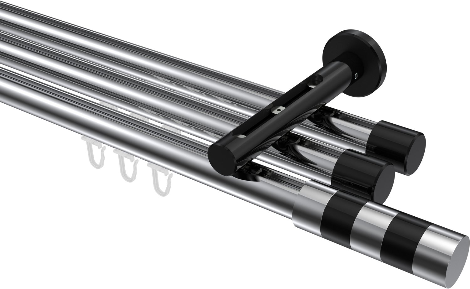 Gardinenstangen mit Innenlauf aus Aluminium / Metall in 20 mm Ø, 3-läufig, Modell SITENO - Mavell Chrom / Schwarz