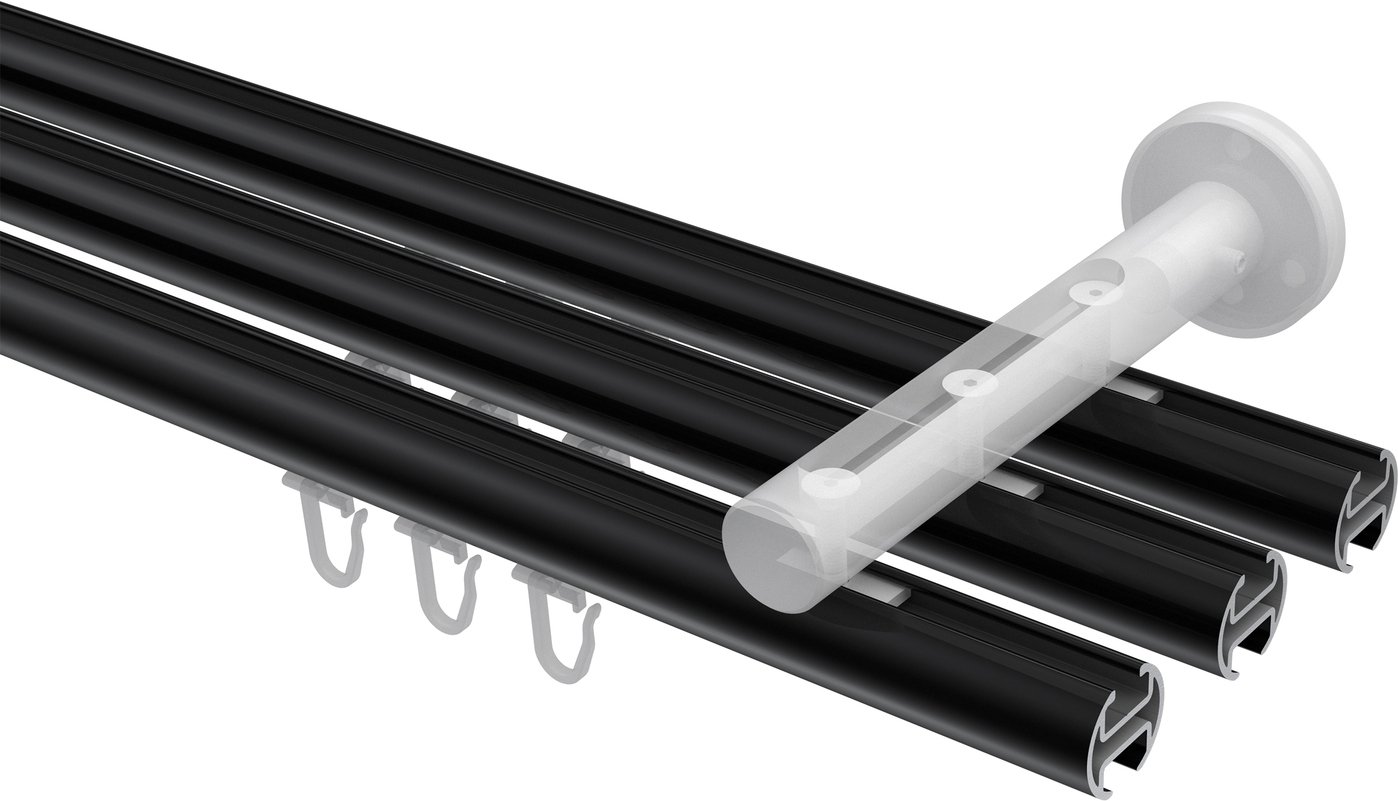 Gardinenstangen mit Innenlauf aus Aluminium / Metall in 20 mm Ø, 3-läufig, Modell SITENO - Mavell Schwarz / Chrom