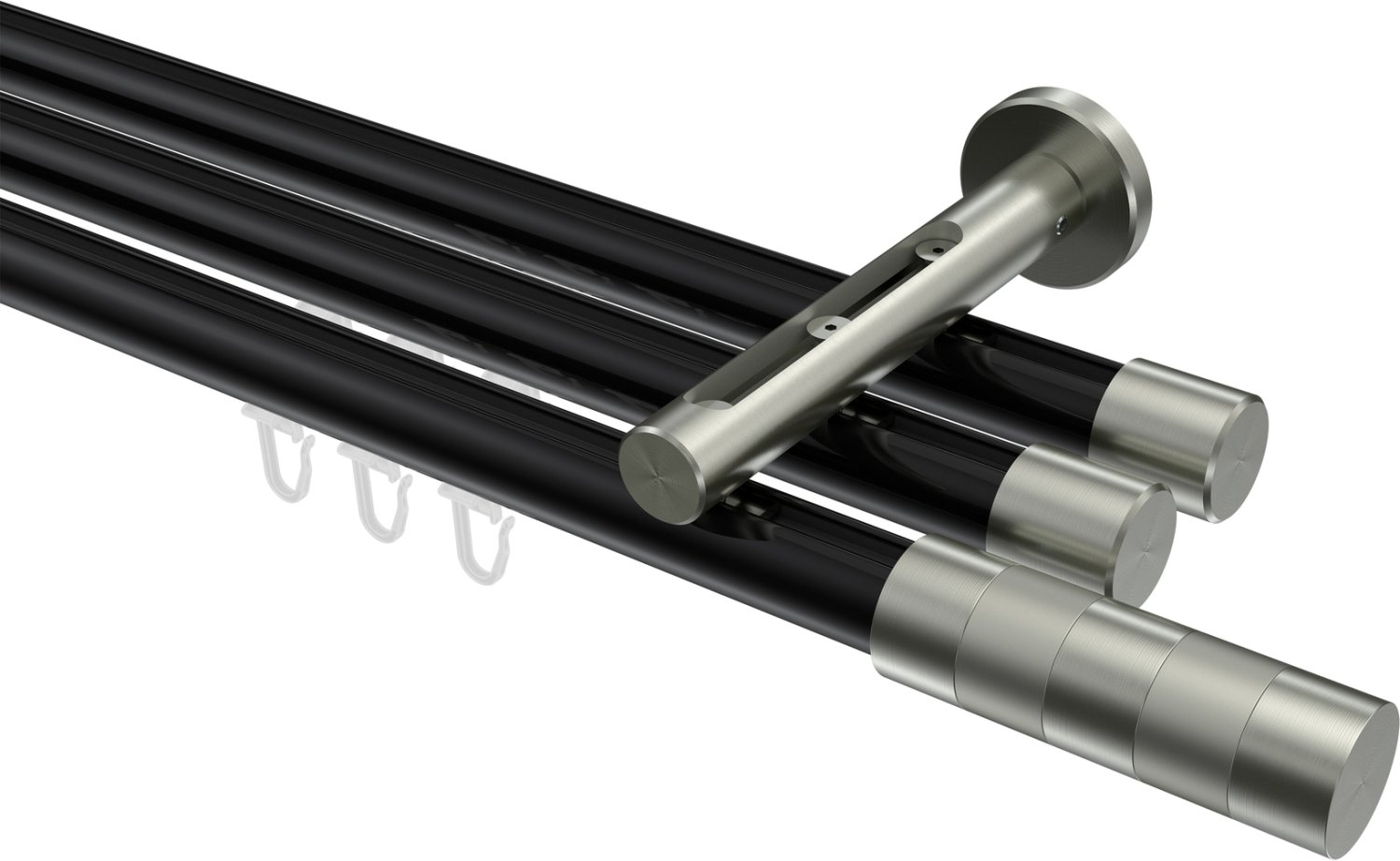 Gardinenstangen mit Innenlauf aus Aluminium / Metall in 20 mm Ø, 3-läufig, Modell SITENO - Mavell Schwarz / Edelstahl-Optik