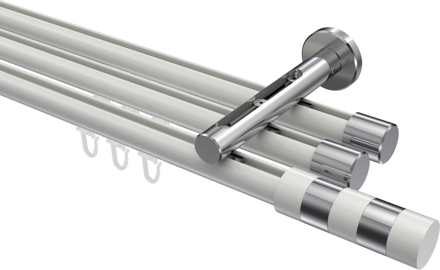 Gardinenstangen mit Innenlauf aus Aluminium / Metall in 20 mm Ø, 3-läufig, Modell SITENO - Mavell Weiß / Chrom