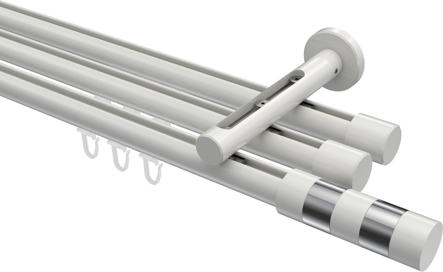 Gardinenstangen mit Innenlauf aus Aluminium / Metall in 20 mm Ø, 3-läufig, Modell SITENO - Mavell Weiß