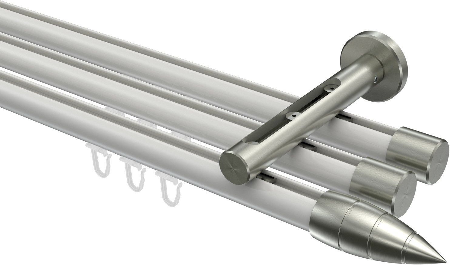 Informationen zu Innenlauf Gardinenstange Aluminium / Metall 20 mm Ø 3-läufig SITENO - Samanto Weiß / Edelstahl-Optik: