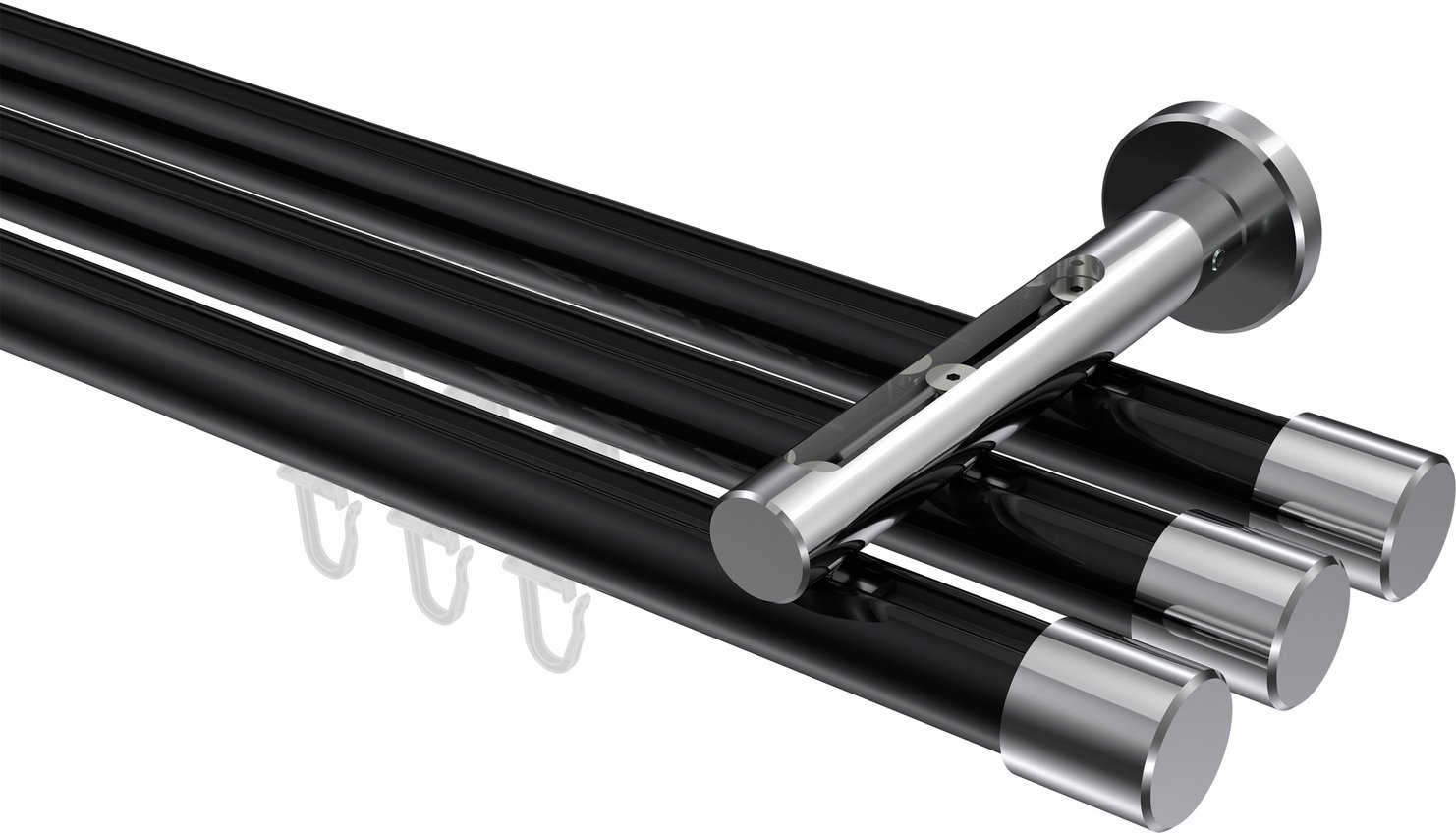 Gardinenstangen mit Innenlauf aus Aluminium / Metall in 20 mm Ø, 3-läufig, Modell SITENO - Santo Schwarz / Chrom