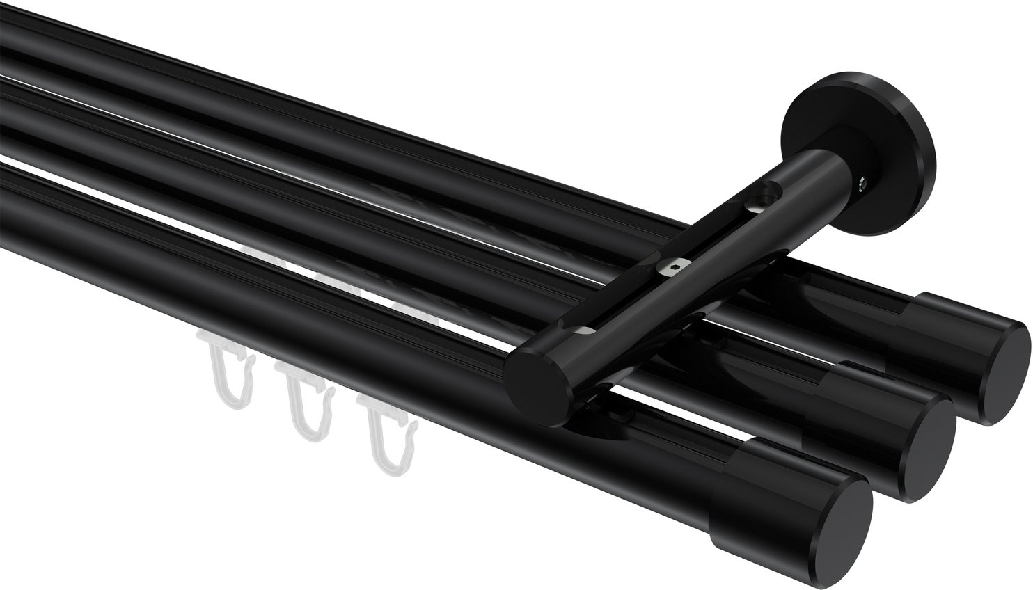 Gardinenstangen mit Innenlauf aus Aluminium / Metall in 20 mm Ø, 3-läufig, Modell SITENO - Santo Schwarz