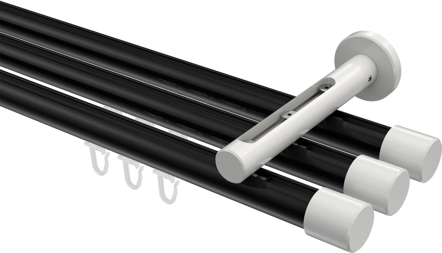 Gardinenstangen mit Innenlauf aus Aluminium / Metall in 20 mm Ø, 3-läufig, Modell SITENO - Santo Schwarz / Weiß