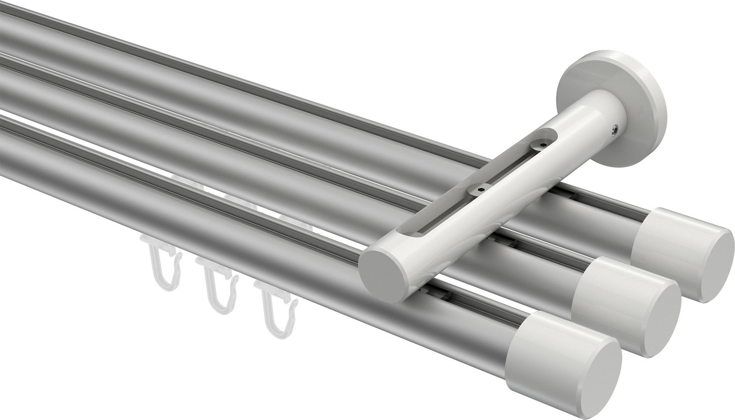 Gardinenstangen mit Innenlauf aus Aluminium / Metall in 20 mm Ø, 3-läufig, Modell SITENO - Santo Silbergrau / Weiß