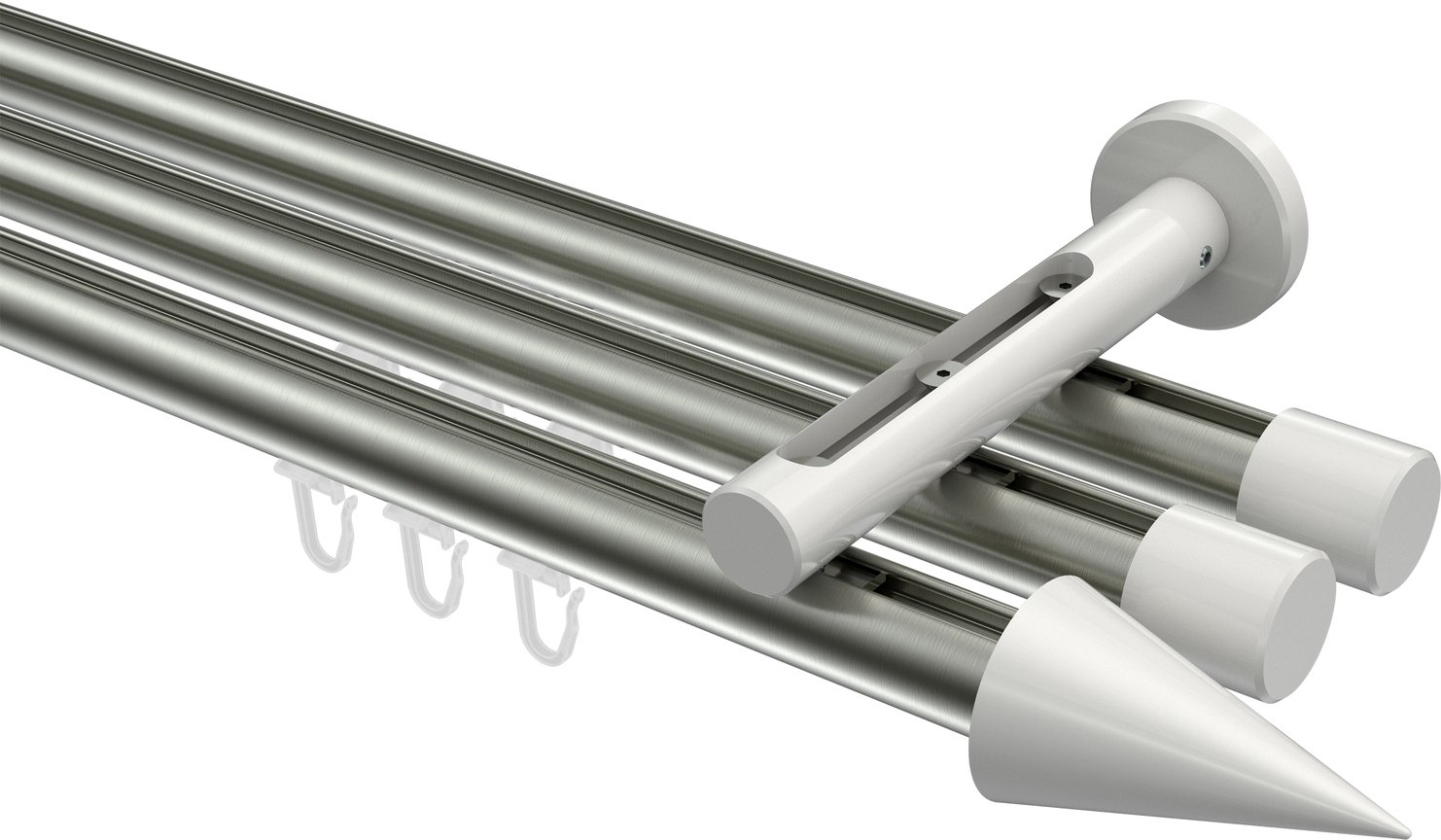 Informationen zu Innenlauf Gardinenstange Aluminium / Metall 20 mm Ø 3-läufig SITENO - Savio Edelstahl-Optik / Weiß: