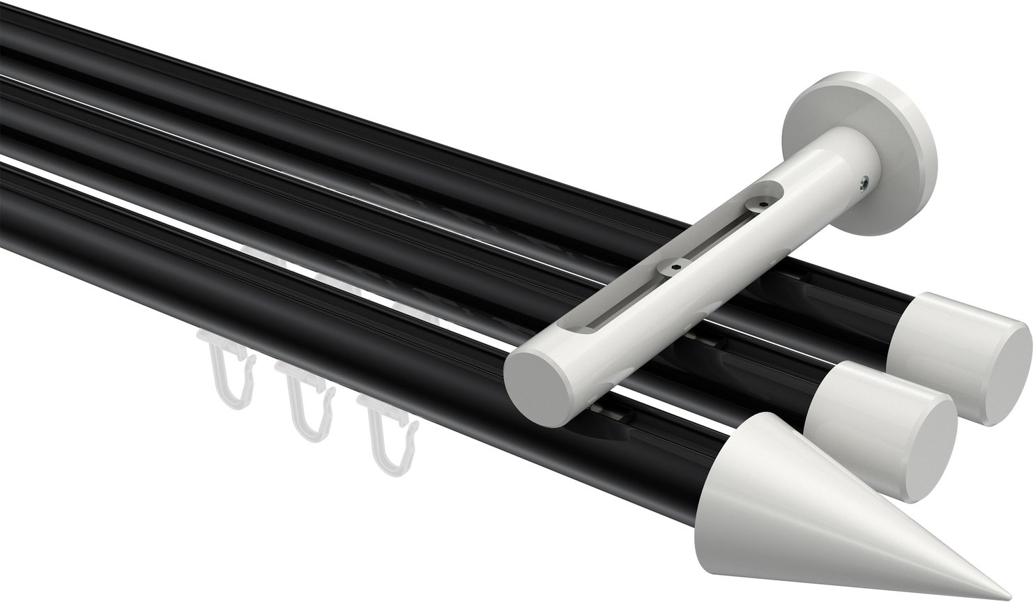 Gardinenstangen mit Innenlauf aus Aluminium / Metall in 20 mm Ø, 3-läufig, Modell SITENO - Savio Schwarz / Weiß