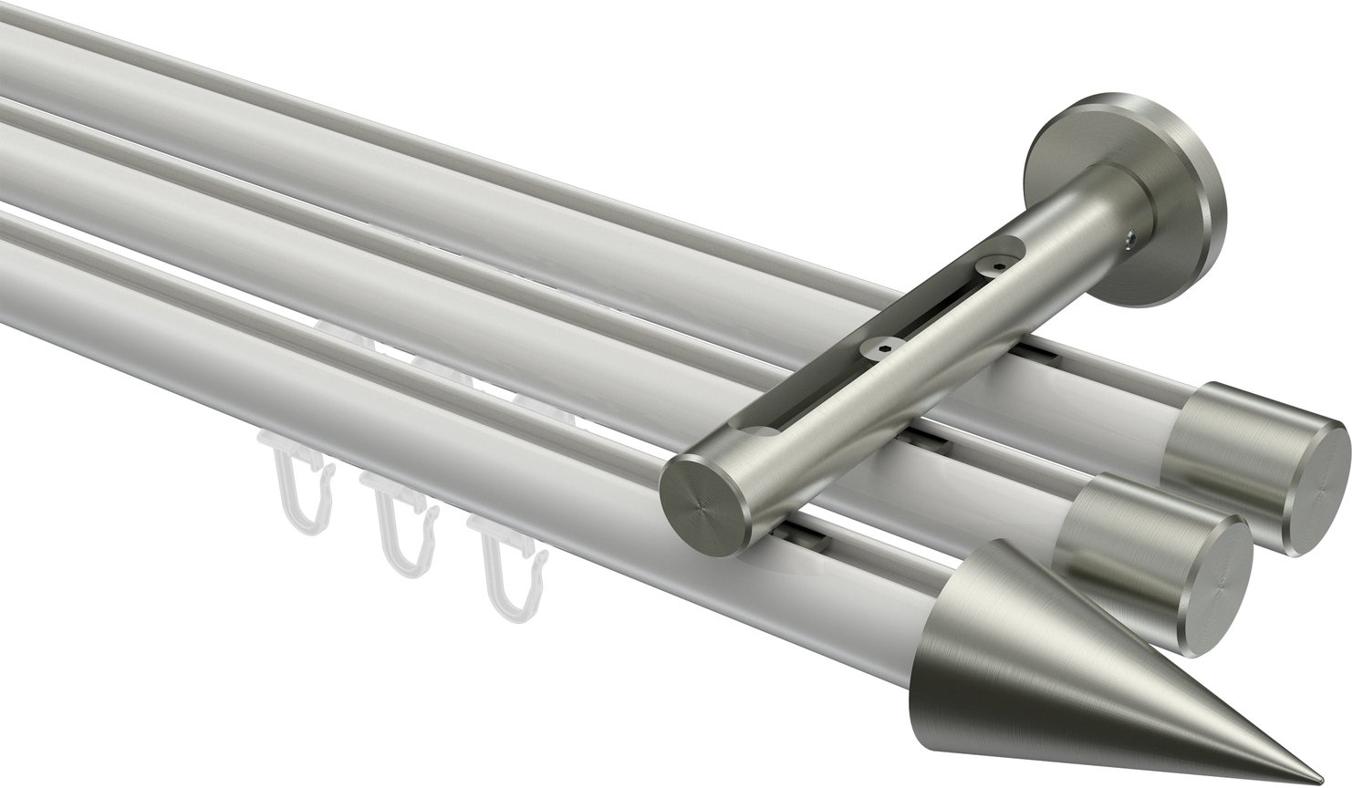 Informationen zu Innenlauf Gardinenstange Aluminium / Metall 20 mm Ø 3-läufig SITENO - Savio Weiß / Edelstahl-Optik: