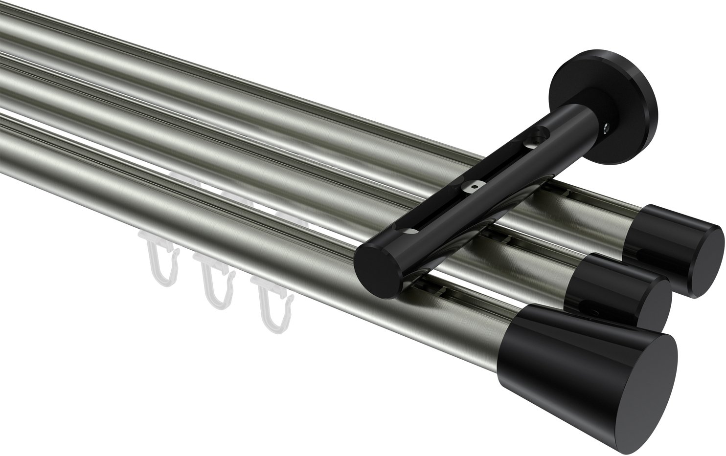 Gardinenstangen mit Innenlauf aus Aluminium / Metall in 20 mm Ø, 3-läufig, Modell SITENO - Sitra Edelstahl-Optik / Schwarz