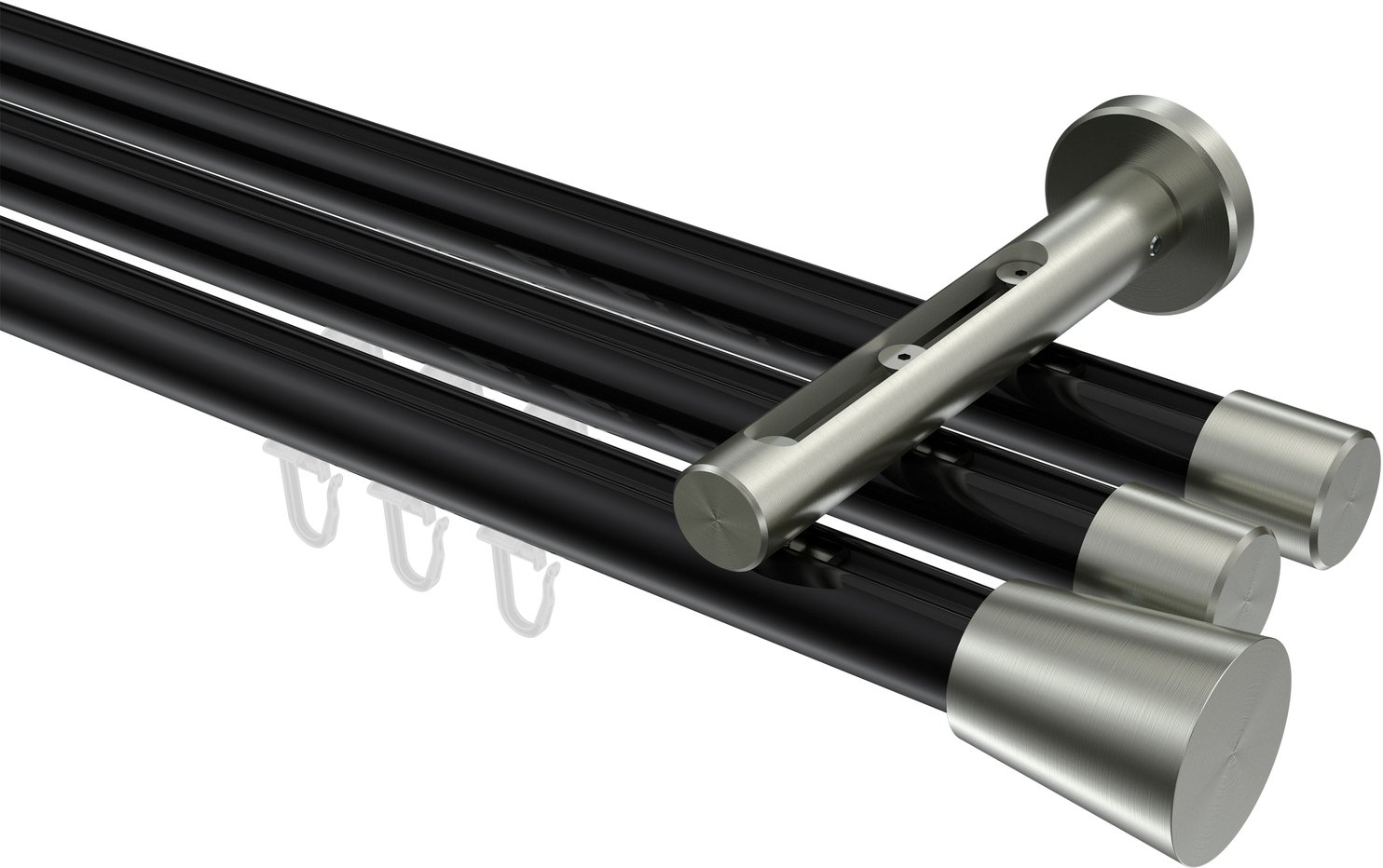 Gardinenstangen mit Innenlauf aus Aluminium / Metall in 20 mm Ø, 3-läufig, Modell SITENO - Sitra Schwarz / Edelstahl-Optik