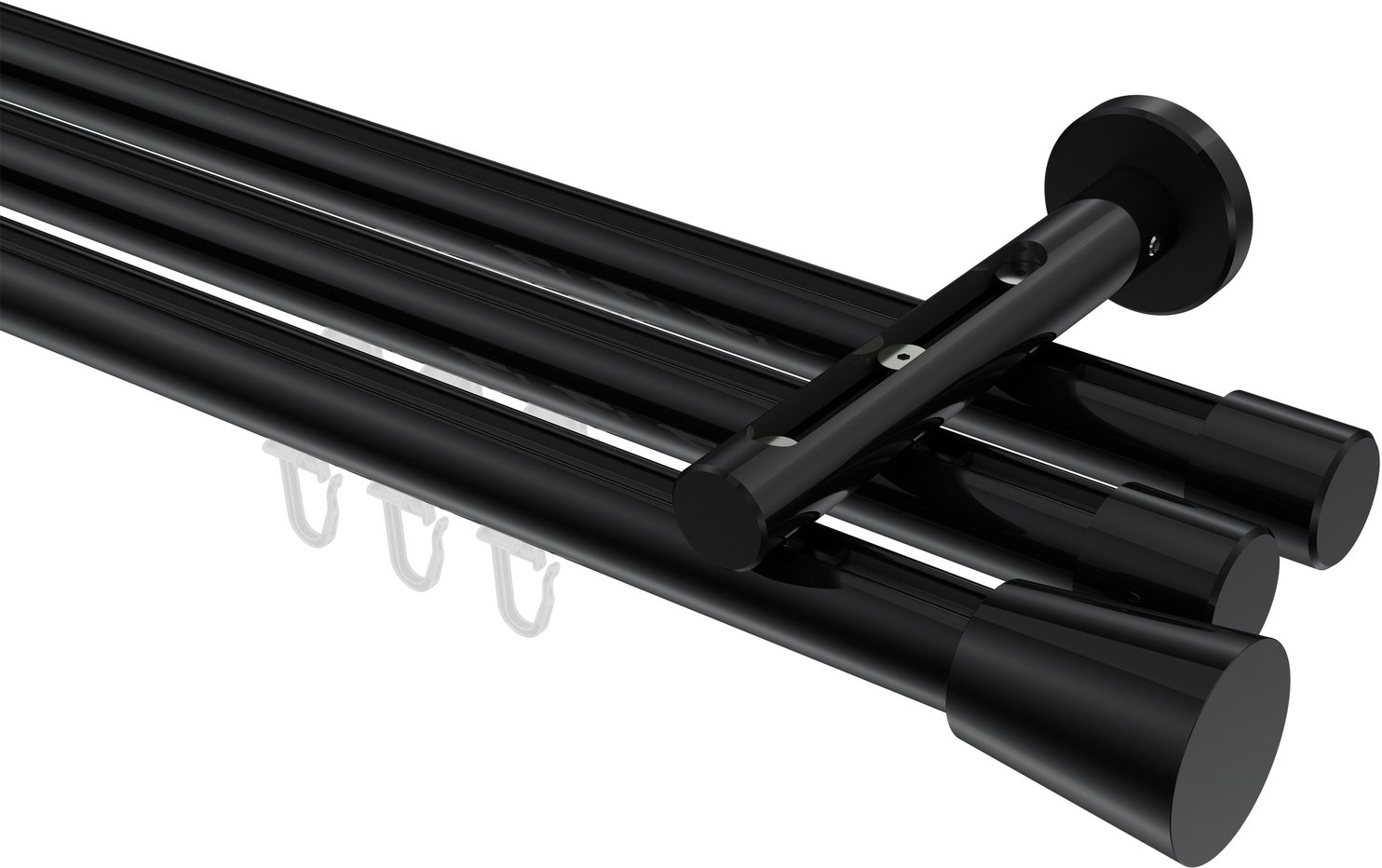 Gardinenstangen mit Innenlauf aus Aluminium / Metall in 20 mm Ø, 3-läufig, Modell SITENO - Sitra Schwarz