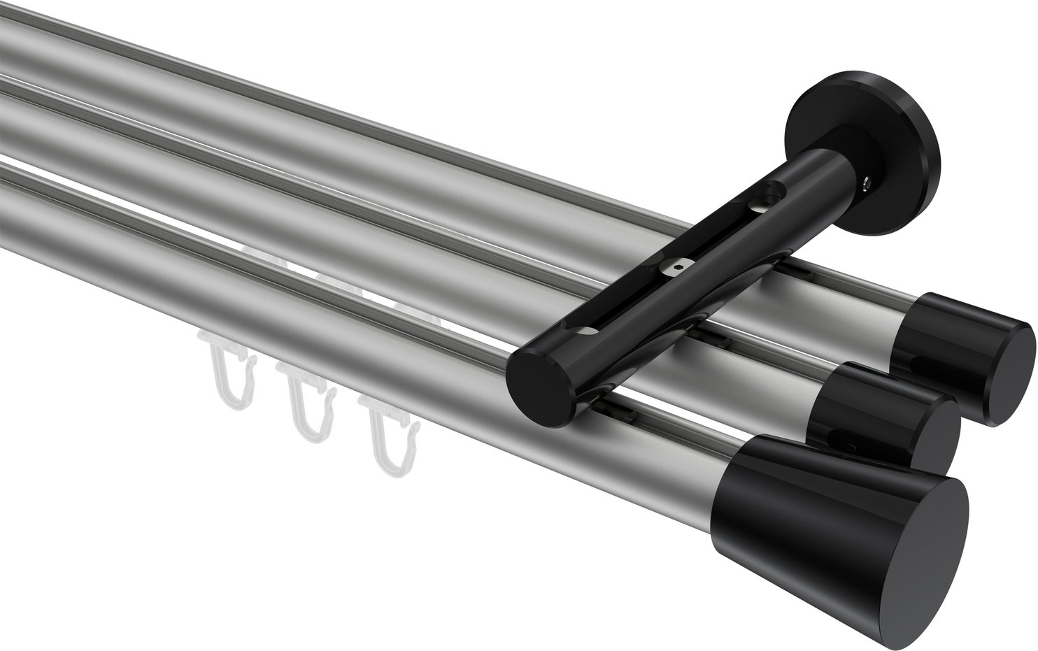 Gardinenstangen mit Innenlauf aus Aluminium / Metall in 20 mm Ø, 3-läufig, Modell SITENO - Sitra Silbergrau / Schwarz