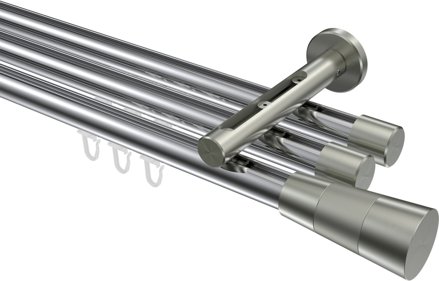 Gardinenstangen mit Innenlauf aus Aluminium / Metall in 20 mm Ø, 3-läufig, Modell SITENO - Tanara Chrom / Edelstahl-Optik