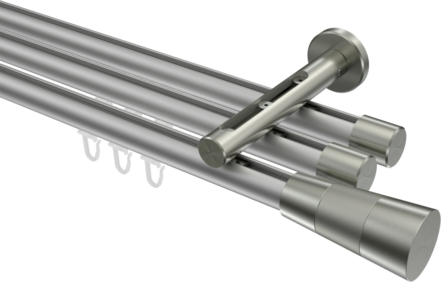 Gardinenstangen mit Innenlauf aus Aluminium / Metall in 20 mm Ø, 3-läufig, Modell SITENO - Tanara Silbergrau / Edelstahl-Optik