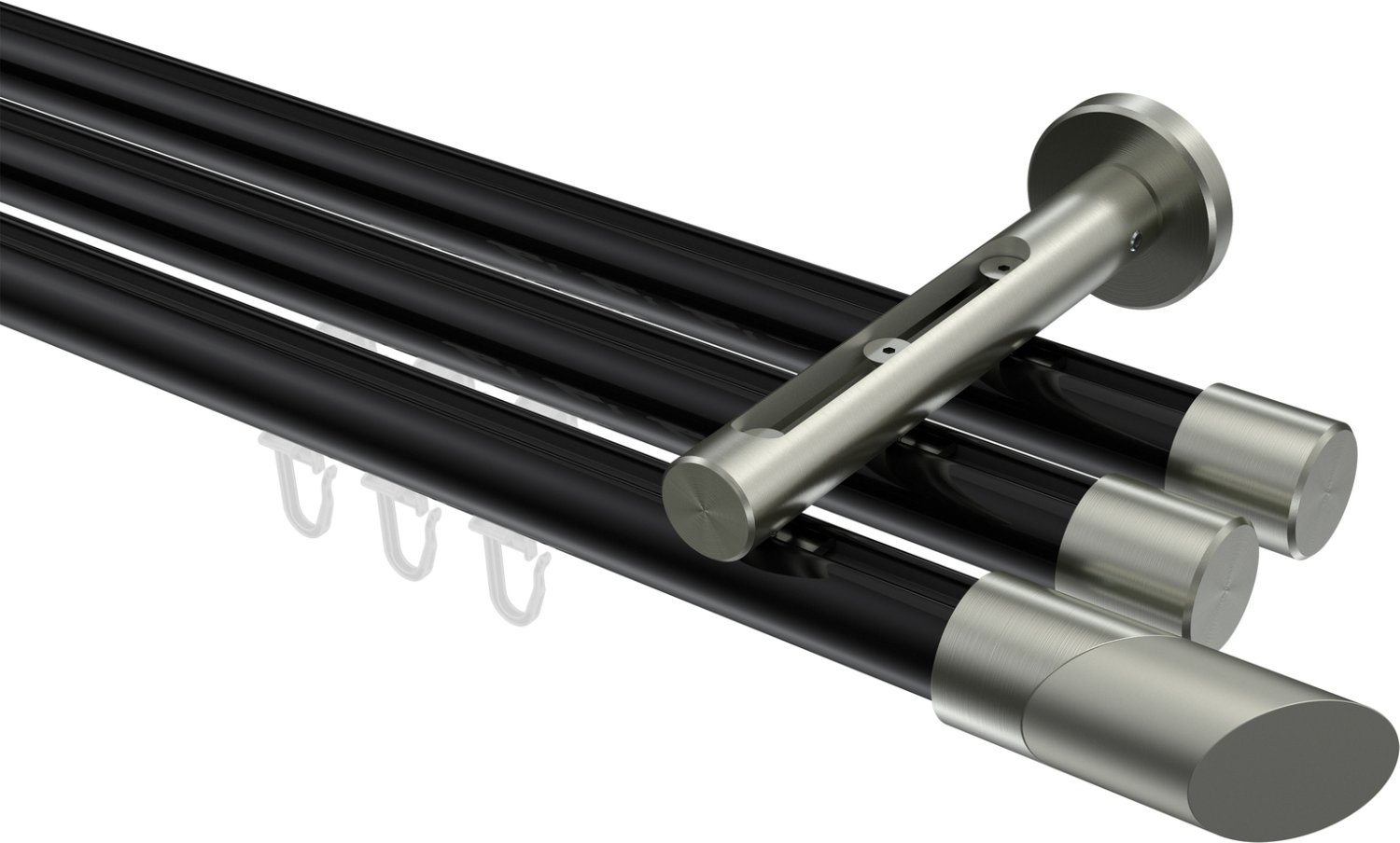 Gardinenstangen mit Innenlauf aus Aluminium / Metall in 20 mm Ø, 3-läufig, Modell SITENO - Verano Schwarz / Edelstahl-Optik