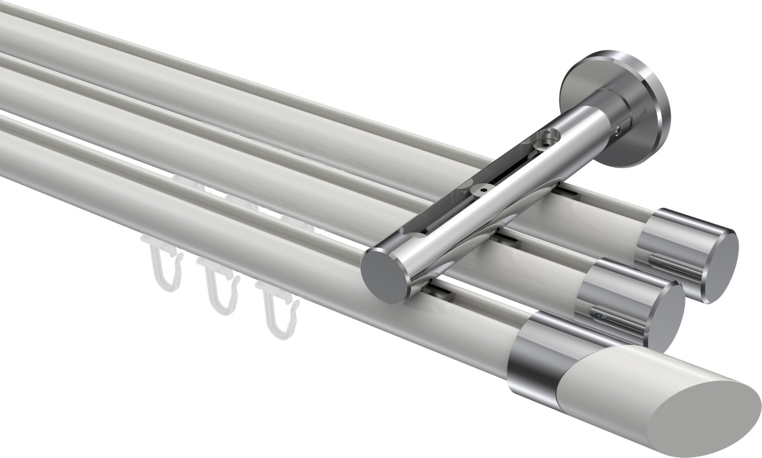 Gardinenstangen mit Innenlauf aus Aluminium / Metall in 20 mm Ø, 3-läufig, Modell SITENO - Verano Weiß / Chrom