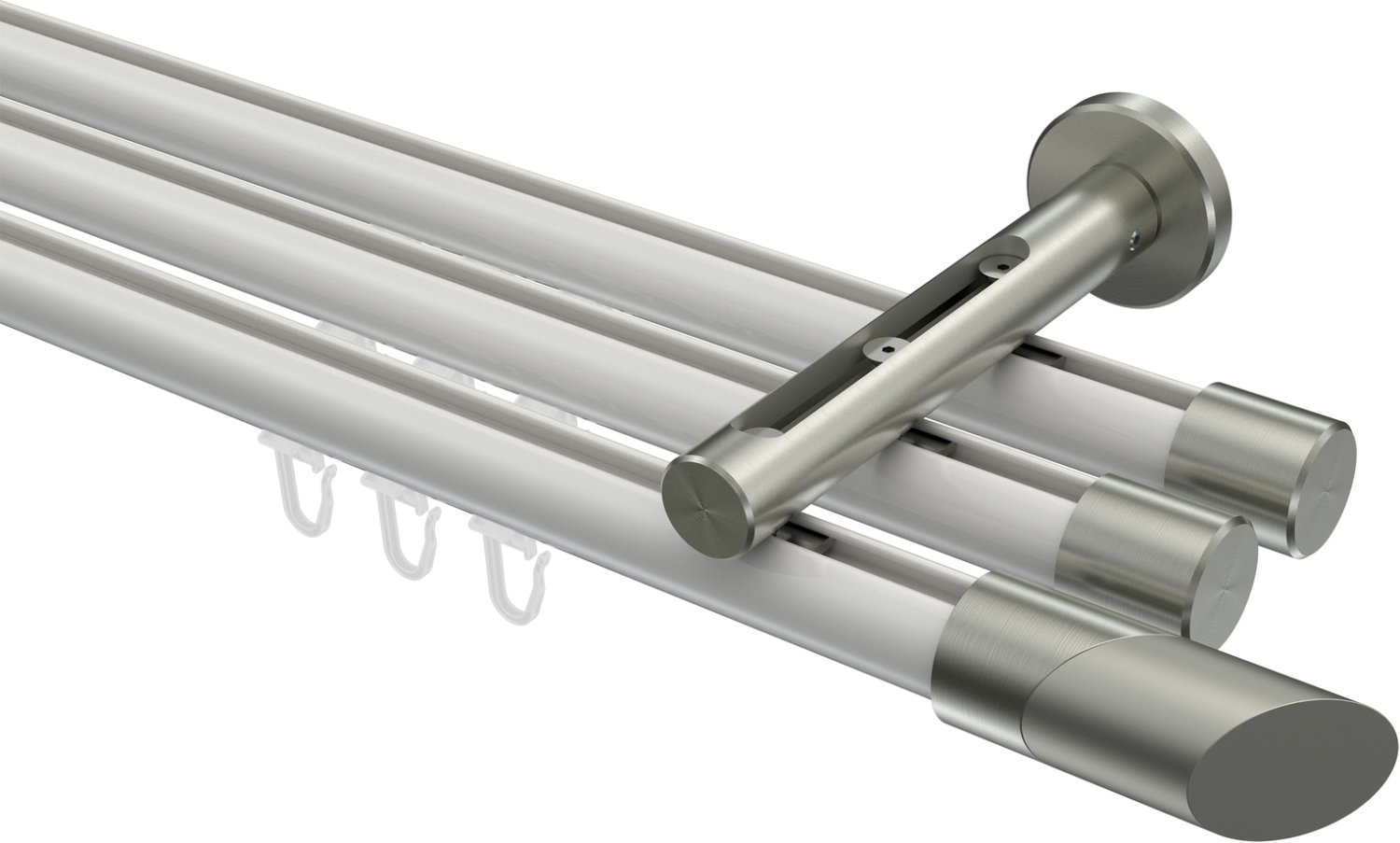 Gardinenstangen mit Innenlauf aus Aluminium / Metall in 20 mm Ø, 3-läufig, Modell SITENO - Verano Weiß / Edelstahl-Optik