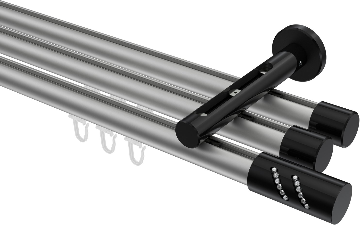 Gardinenstangen mit Innenlauf aus Aluminium / Metall in 20 mm Ø, 3-läufig, Modell SITENO - Zoena Silbergrau / Schwarz