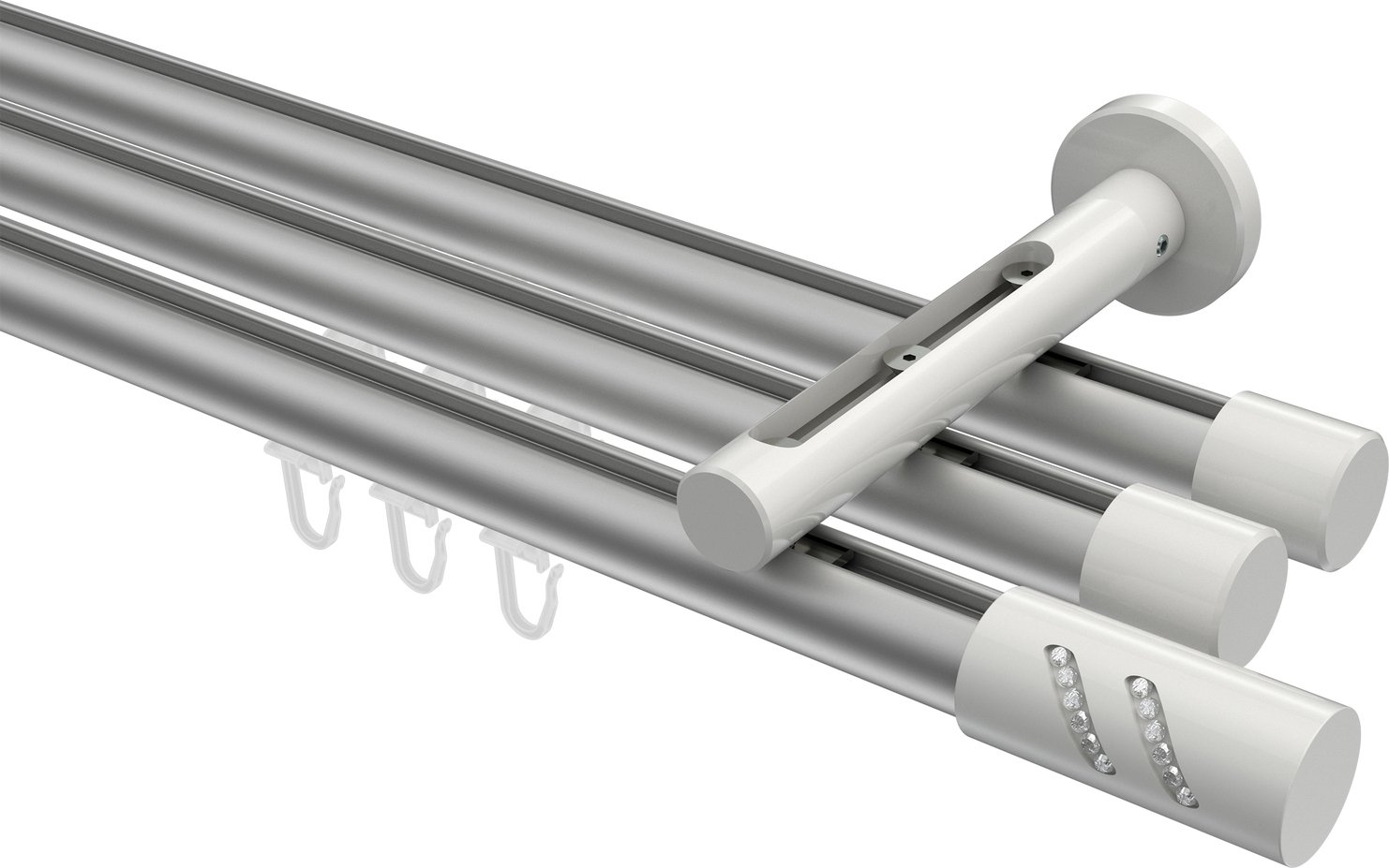Gardinenstangen mit Innenlauf aus Aluminium / Metall in 20 mm Ø, 3-läufig, Modell SITENO - Zoena Silbergrau / Weiß