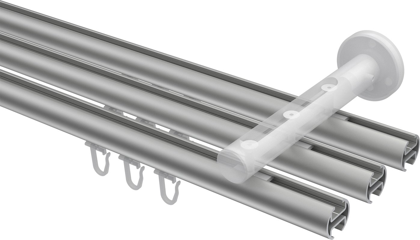 Informationen zu Innenlauf Gardinenstange Aluminium / Metall 20 mm Ø 3-läufig SITENO - Zoena Silbergrau / Weiß: