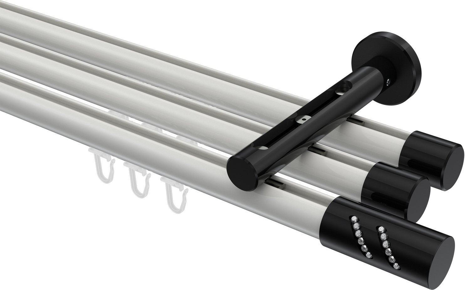 Gardinenstangen mit Innenlauf aus Aluminium / Metall in 20 mm Ø, 3-läufig, Modell SITENO - Zoena Weiß / Schwarz
