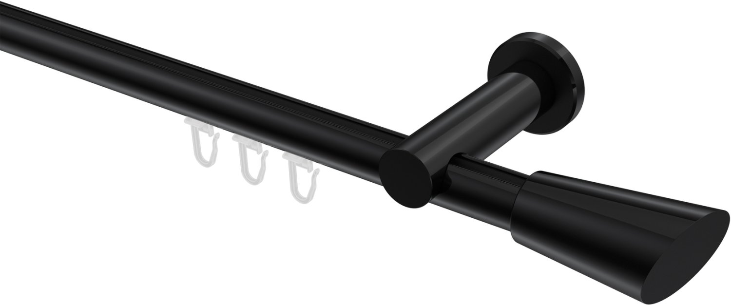 Gardinenstangen mit Innenlauf aus Aluminium / Metall in 20 mm Ø, 1-läufig, Modell PLATON - Bento Schwarz