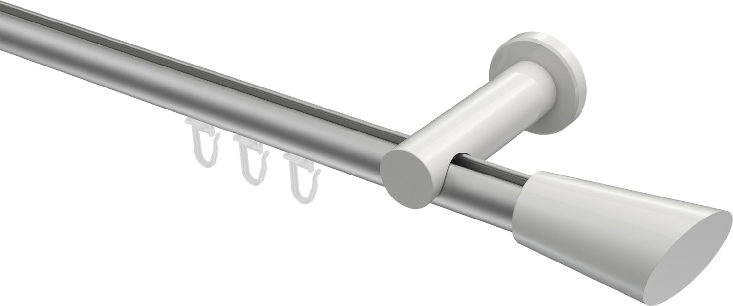 Gardinenstangen mit Innenlauf aus Aluminium / Metall in 20 mm Ø, 1-läufig, Modell PLATON - Bento Silbergrau / Weiß