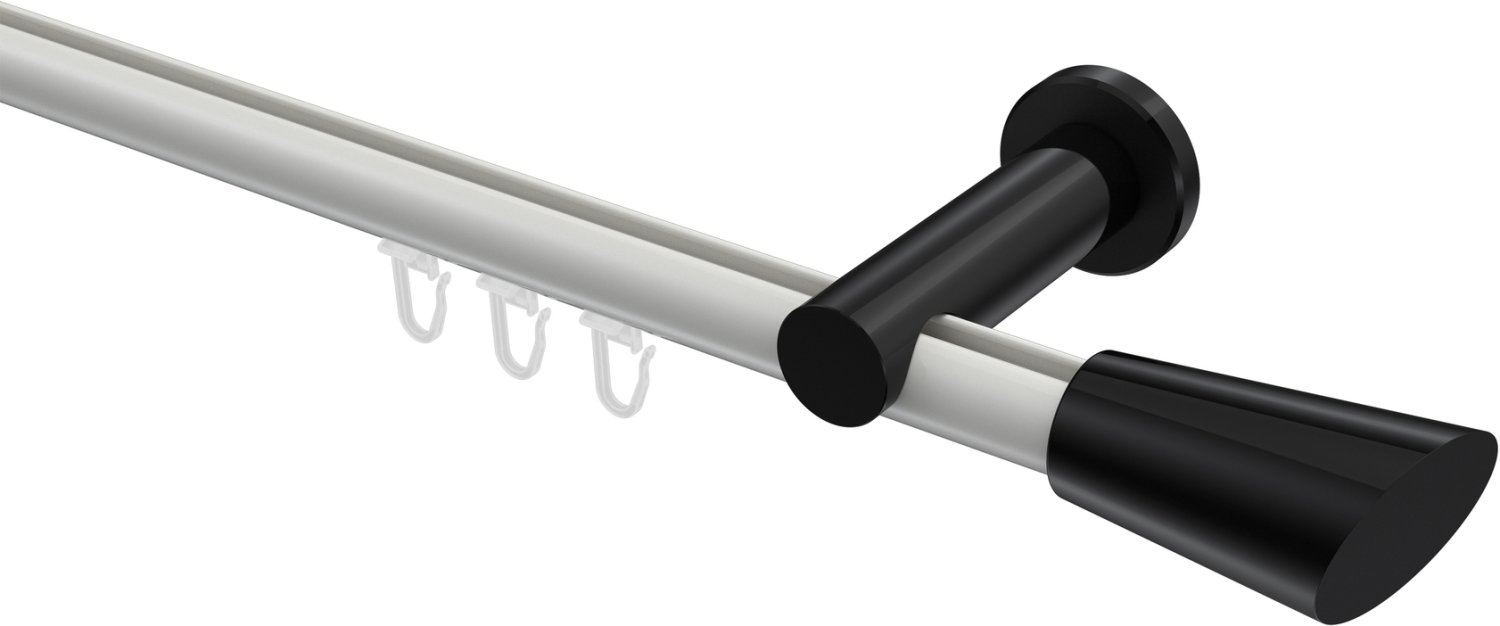 Gardinenstangen mit Innenlauf aus Aluminium / Metall in 20 mm Ø, 1-läufig, Modell PLATON - Bento Weiß / Schwarz