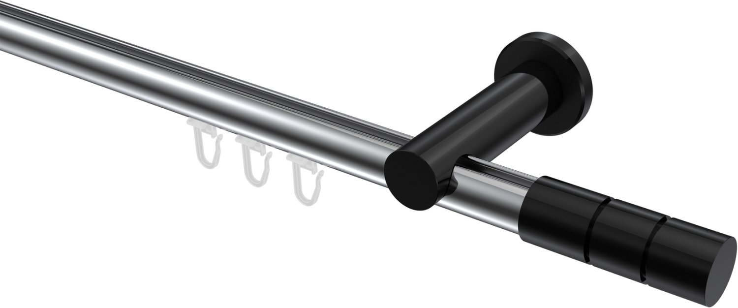 Gardinenstangen mit Innenlauf aus Aluminium / Metall in 20 mm Ø, 1-läufig, Modell PLATON - Elanto Chrom / Schwarz