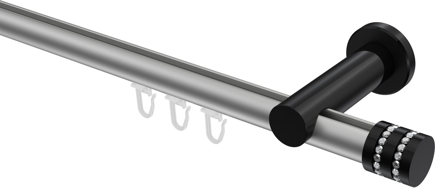 Gardinenstangen mit Innenlauf aus Aluminium / Metall in 20 mm Ø, 1-läufig, Modell PLATON - Estana Silbergrau / Schwarz
