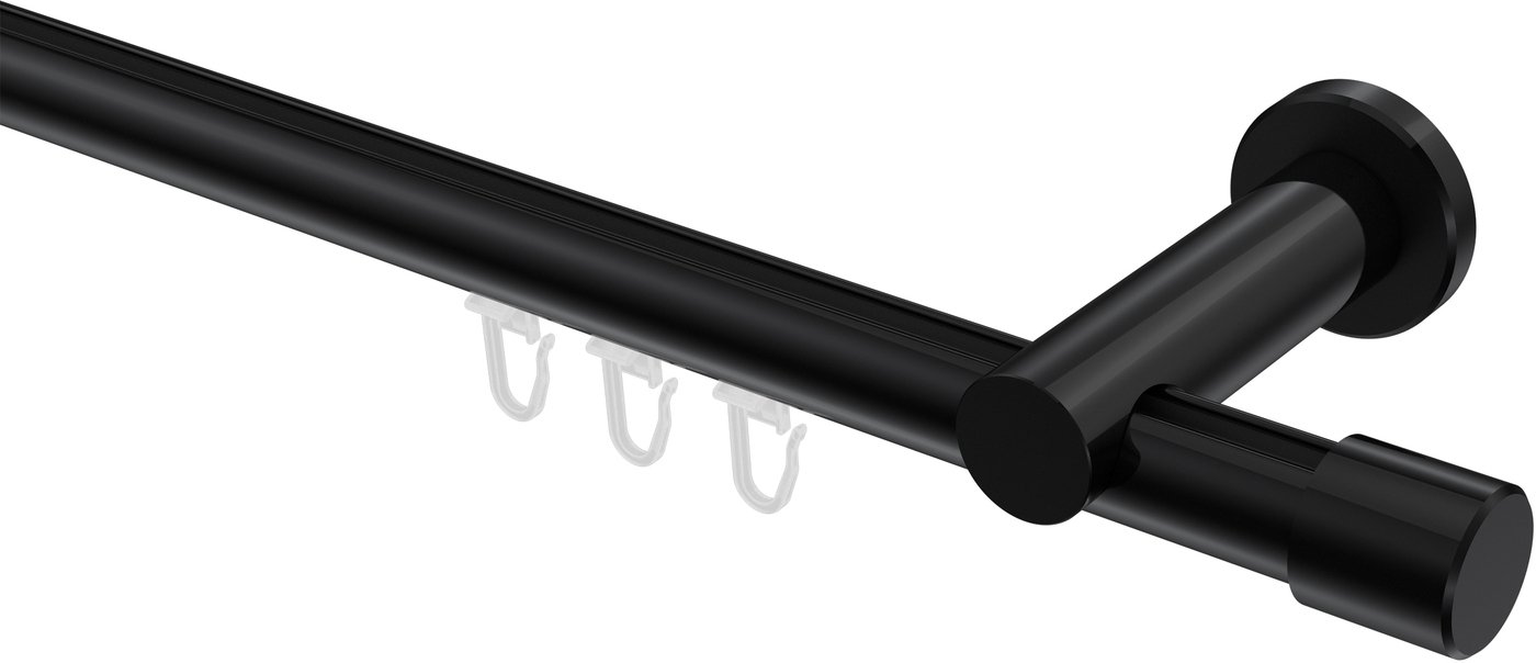 Gardinenstangen mit Innenlauf aus Aluminium / Metall in 20 mm Ø, 1-läufig, Modell PLATON - Santo Schwarz