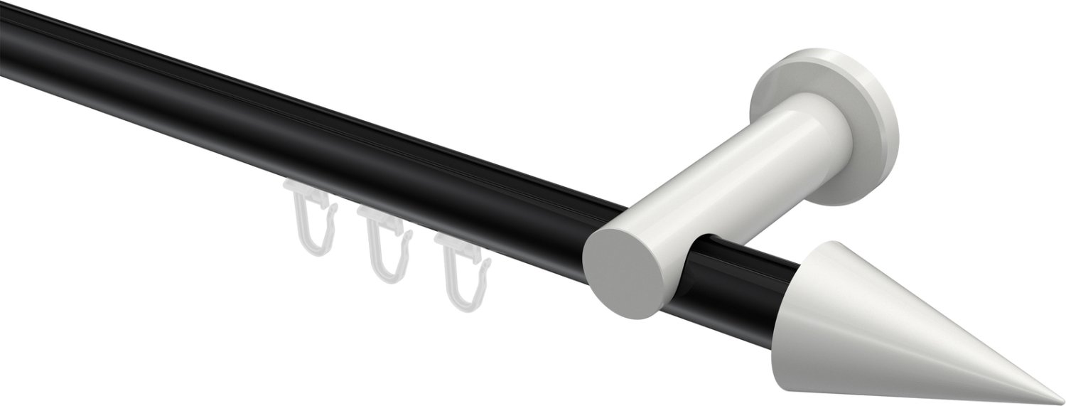 Gardinenstangen mit Innenlauf aus Aluminium / Metall in 20 mm Ø, 1-läufig, Modell PLATON - Savio Schwarz / Weiß