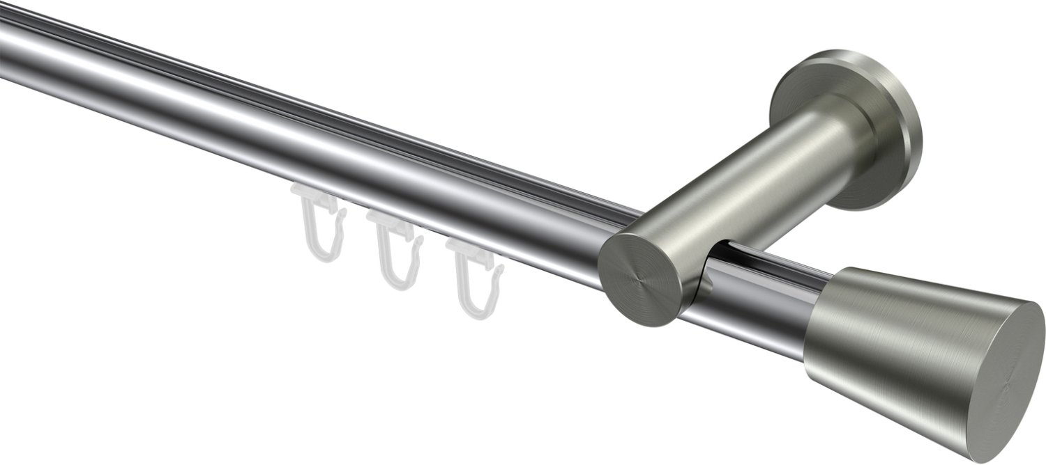 Gardinenstangen mit Innenlauf aus Aluminium / Metall in 20 mm Ø, 1-läufig, Modell PLATON - Sitra Chrom / Edelstahl-Optik