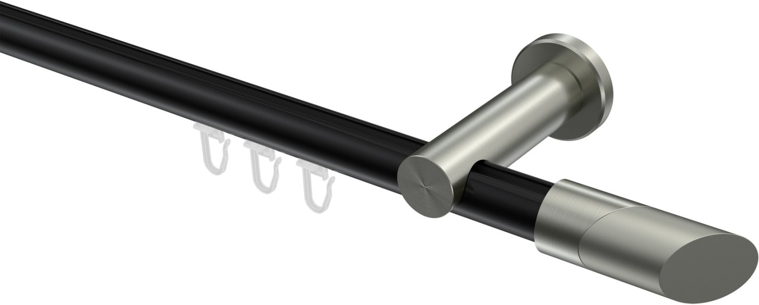 Informationen zu Innenlauf Gardinenstange Aluminium / Metall 20 mm Ø PLATON - Verano Schwarz / Edelstahl-Optik: