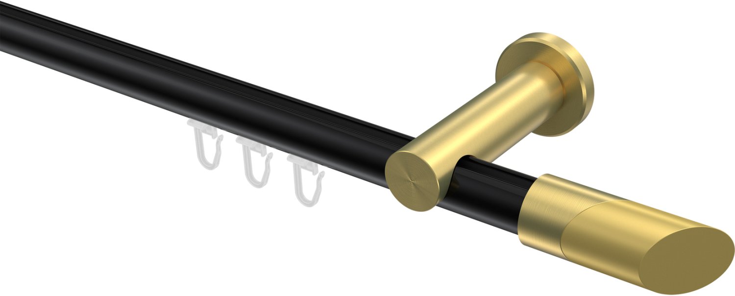Gardinenstangen mit Innenlauf aus Aluminium / Metall in 20 mm Ø, 1-läufig, Modell PLATON - Verano Schwarz / Messing-Optik