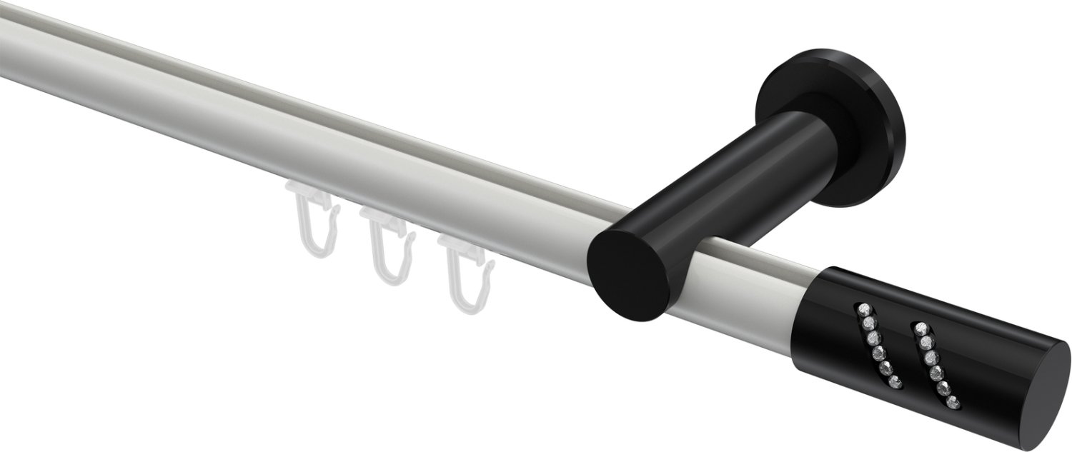 Gardinenstangen mit Innenlauf aus Aluminium / Metall in 20 mm Ø, 1-läufig, Modell PLATON - Zoena Weiß / Schwarz