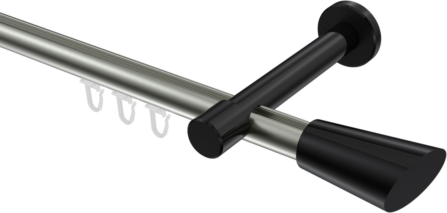 Gardinenstangen mit Innenlauf aus Aluminium / Metall in 20 mm Ø, 1-läufig, Modell PRESTIGE - Bento Edelstahl-Optik / Schwarz