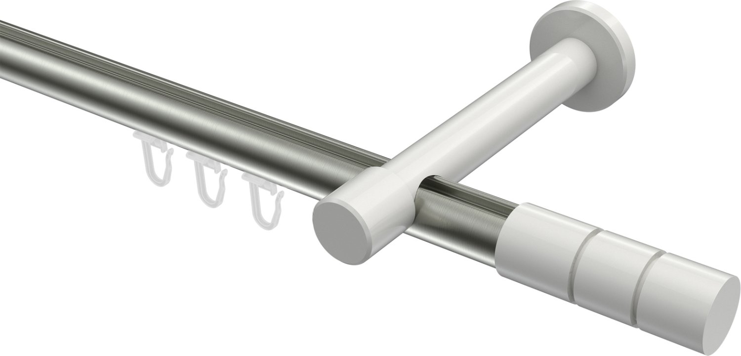 Informationen zu Innenlauf Gardinenstange Aluminium / Metall 20 mm Ø PRESTIGE - Elanto Edelstahl-Optik / Weiß: