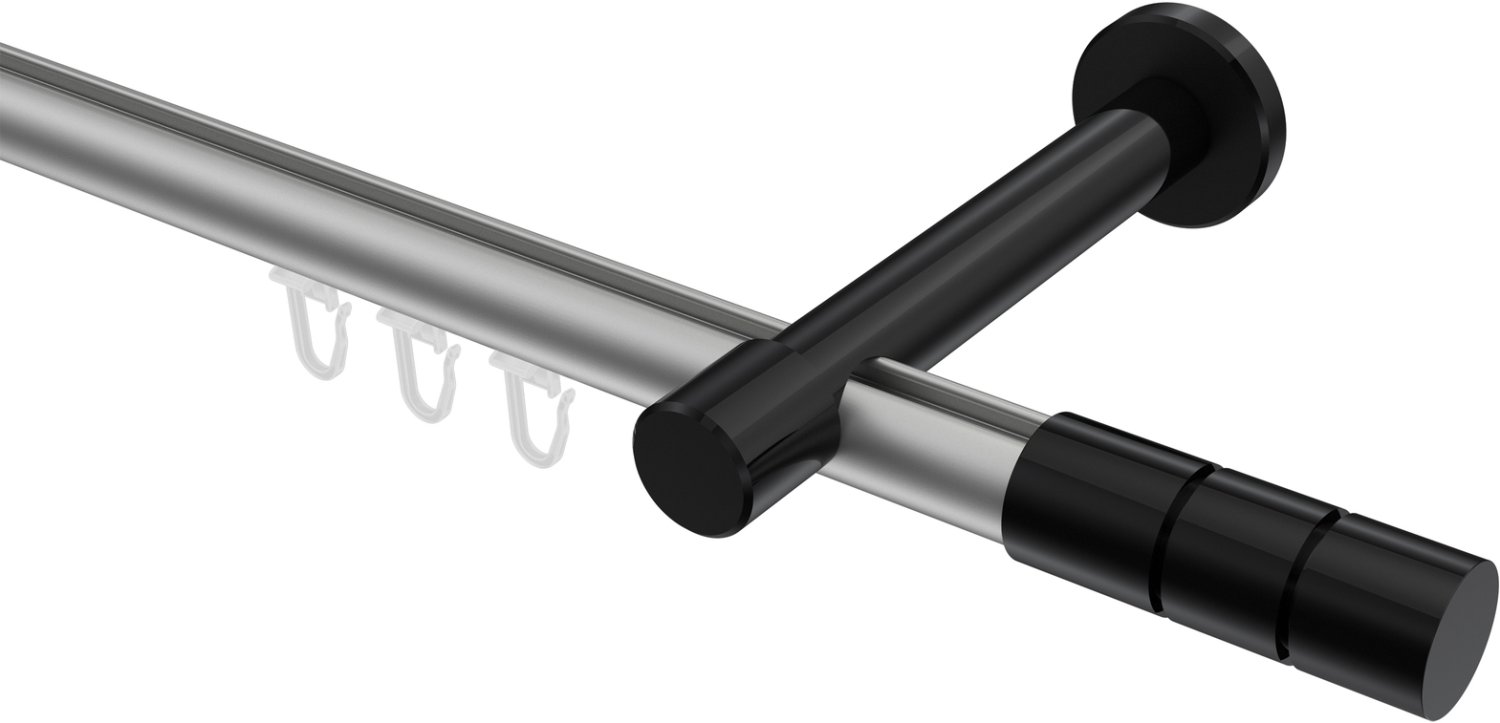 Gardinenstangen mit Innenlauf aus Aluminium / Metall in 20 mm Ø, 1-läufig, Modell PRESTIGE - Elanto Silbergrau / Schwarz